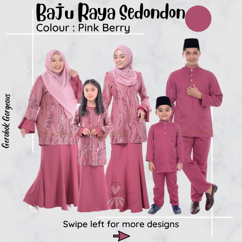 New Baju Raya Sedondon Tema Warna Pink Berry Merah Jambu Set Family Ayah Ibu Anak Baju Kurung Baju Melayu Kurta Shopee Malaysia